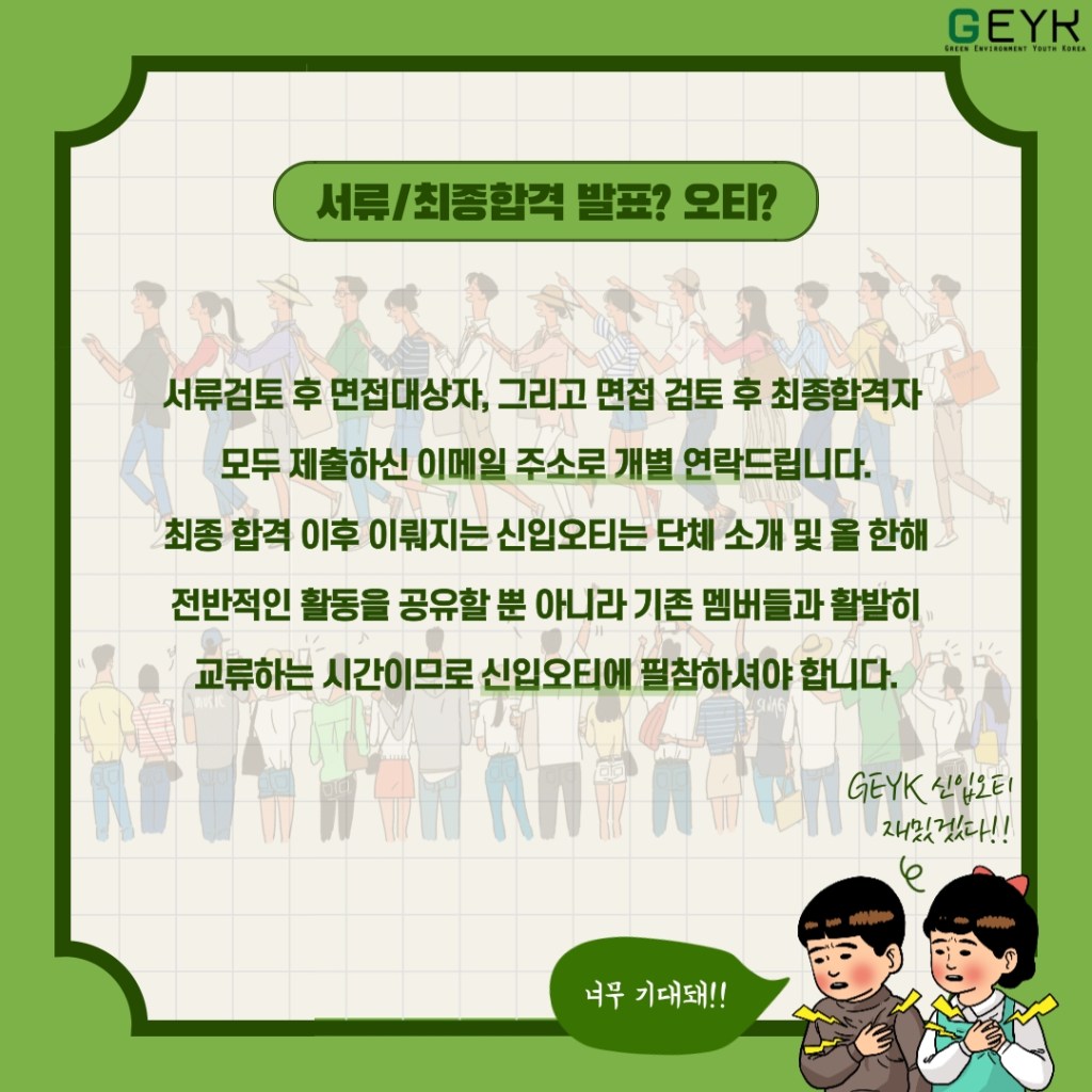 단, 메일 제목은 지원서 파일 제목과 동일하게 제출할 것 ([GEYK] 활동멤버지원서_이름)