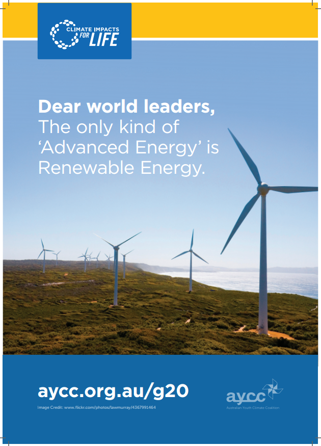 호주에서 열린 이번 G20 회의에, AYCC(Australian Youth Climate Coalition)라는 호주의 기후변화 청년단체는 공개항의편지를 작성하였는데요, GEYK도 함께 힘을 더하였습니다.