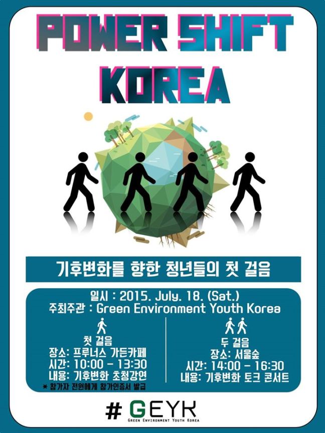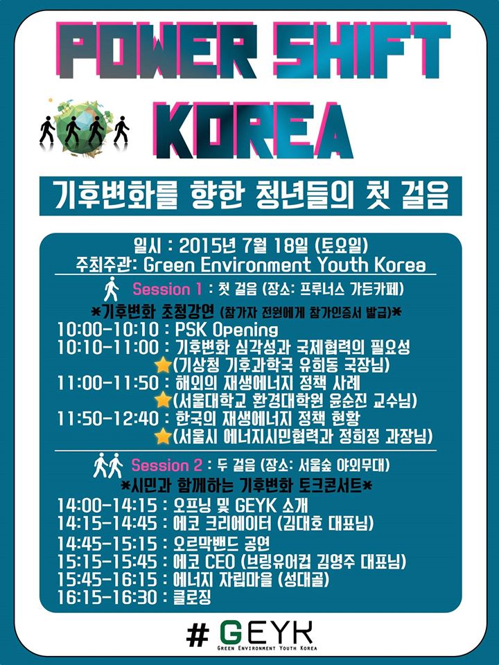 GEYK은 지난 7월 18일, 프루너스 가든카페와 서울숲 야외무대에서 청년 기후변화 행사인 Power Shift Korea를 개최하였습니다.